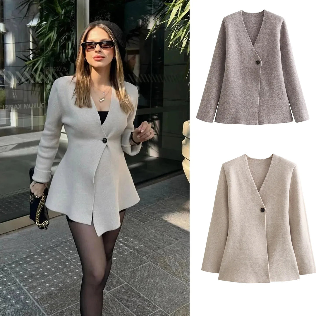 Tara - Single Breasted Solid Knitted Cardigan Coat